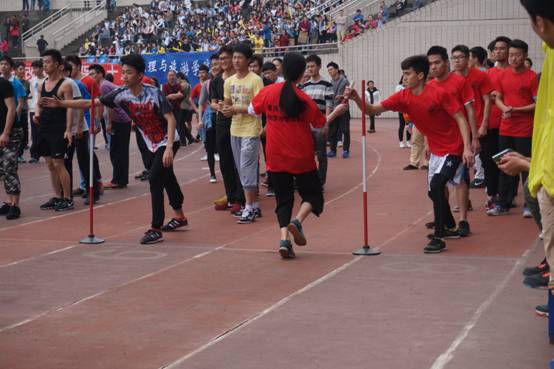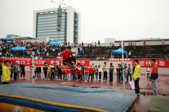 比赛中的选手们雨中翱翔,勇往直前。看台上的同学们激情不断,锣鼓喧天,呼叫呐喊“经管加油!”、“经管最棒!”为每一个在赛场上努力的人儿鼓劲加油。同时,已经是大四即将面临毕业的李族同学,为了学院的荣誉,请假返校,为院争光,再创辉煌。