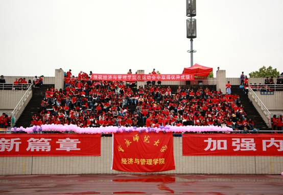 运动员这支优秀的队伍中,他们展现出更多的是作为一名经管人的责任与自豪。尽管天公不作美,瑟瑟春雨淅沥,却淋不湿我们经管人心中奋发拼搏的热血。同时,赛场上随处可见身着院服的志愿者们奔跑着、忙碌着,在雨中独成一道亮丽的风景。