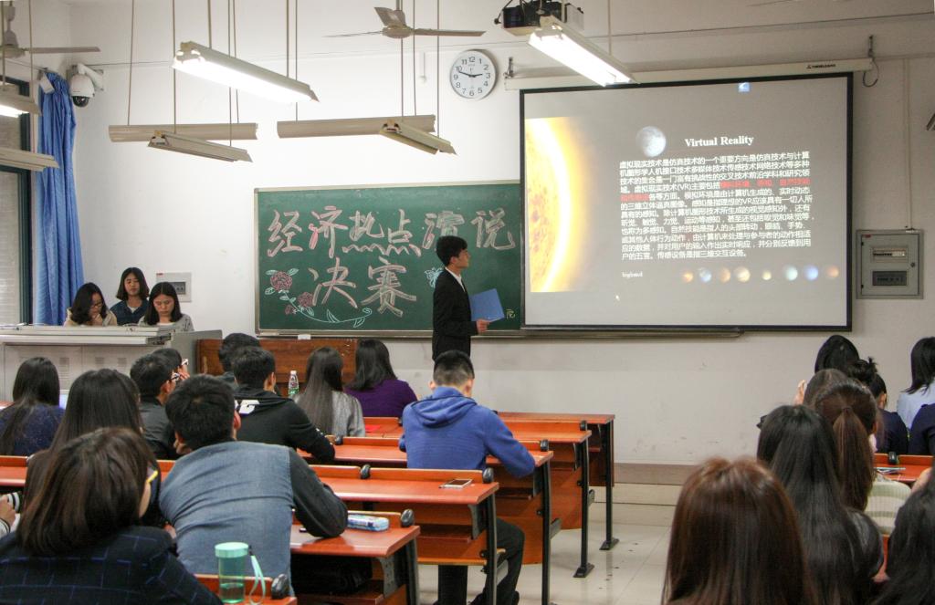 经济热点演说大赛决赛在弘德楼14205拉开序幕。经过初赛的角逐,共有12个小组脱颖而出跻身决赛,参赛小组各展才能,献上了一场激情饱满的演说盛宴。