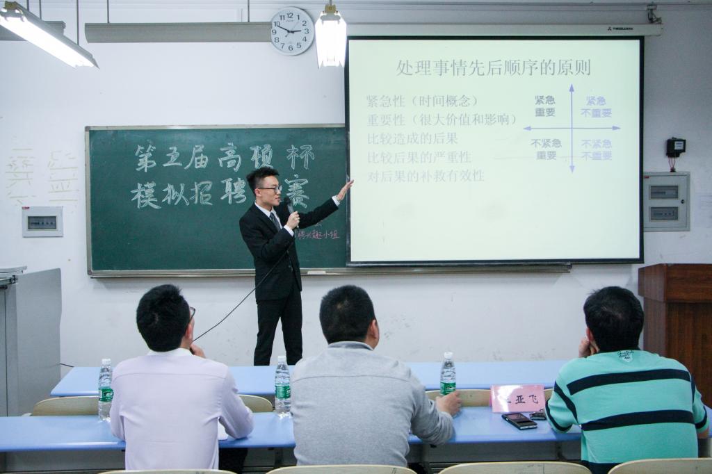 第五届“高顿杯”模拟招聘大赛于弘德楼13101教室顺利举行。大赛在模拟招聘兴趣小组指导老师吴博的指导下由社会实践协会、模拟招聘兴趣小组主办。高顿财经公司代表张宇、海角社区