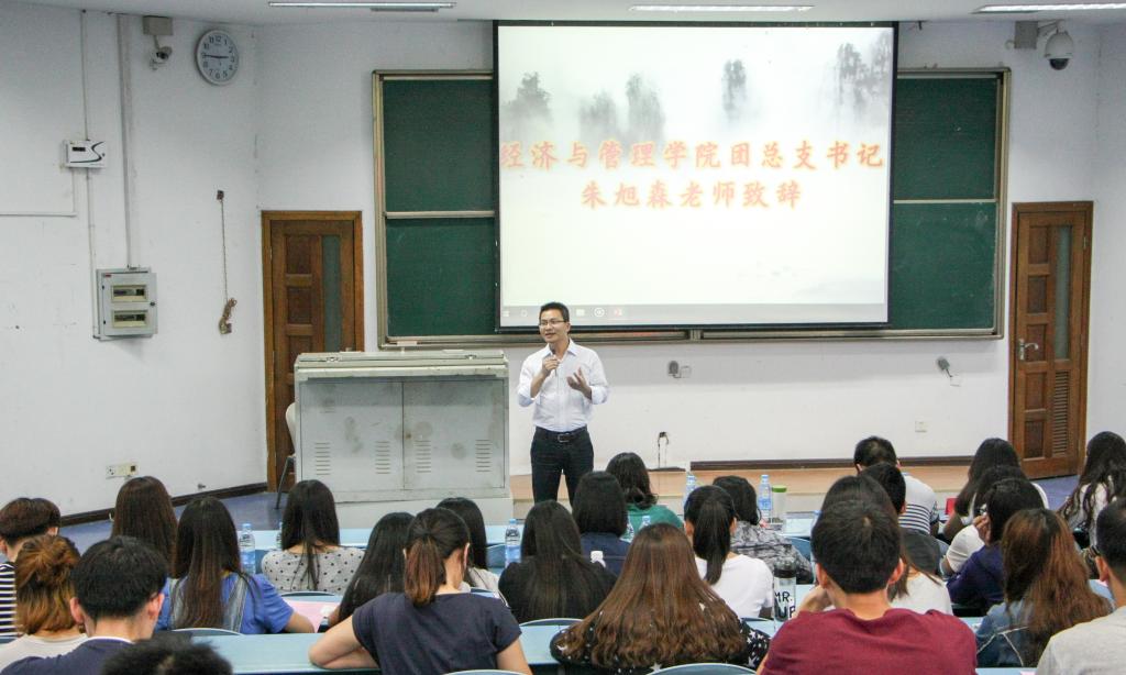 伴随着庄严嘹亮的共青团团歌,此次大会拉开了帷幕。团总支书记朱旭森首先进行了精彩的开幕致辞,他肯定了上一届学生会这一年的辛勤工作,道出了自己对学院和学生会的祝福以及代表学院教师给予了相守相伴共同成长的承诺。“锻炼自我,用爱服务”一向是学生会工作的宗旨,在对第十届团总支学生会工作成果的回顾后,新的成员们更要懂得学会做好工作务实负责,严以律己的准备。