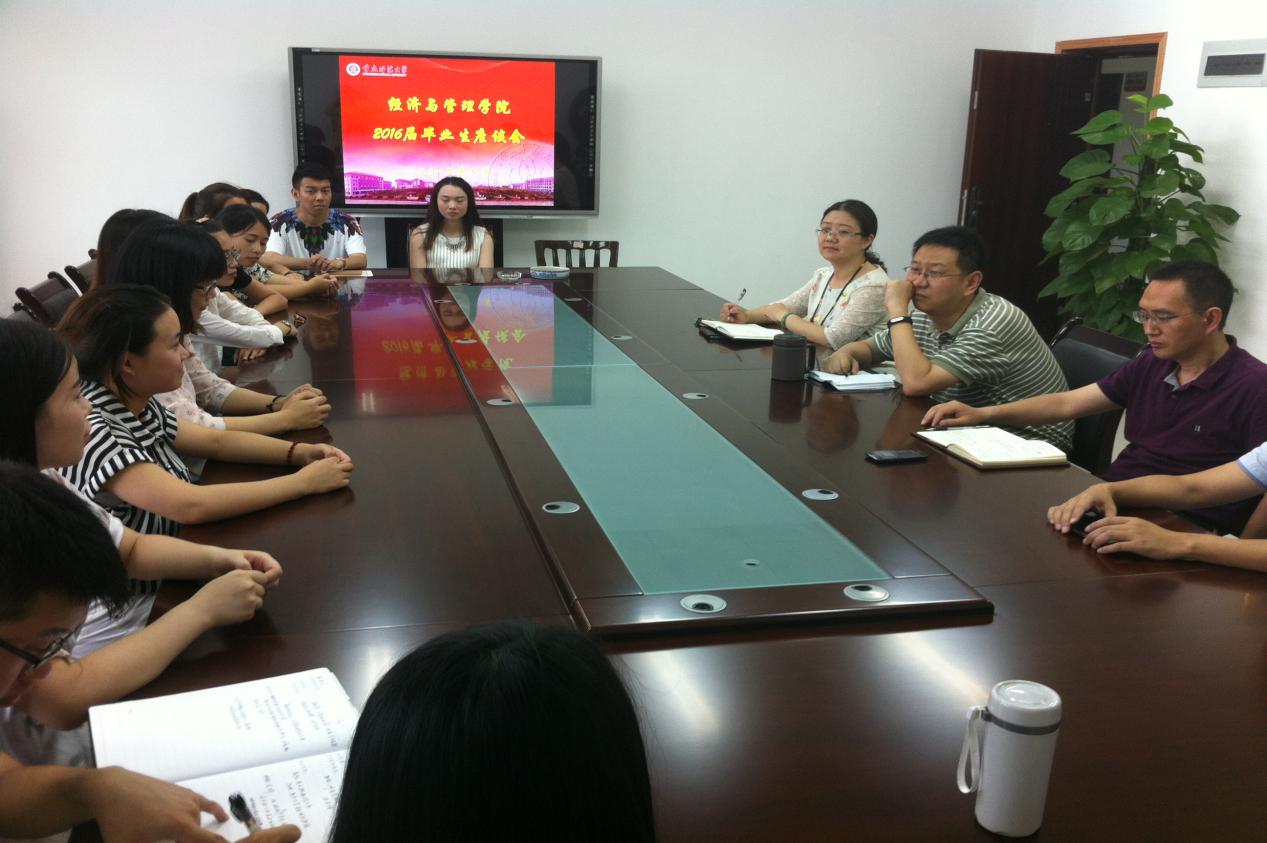 为了解毕业生对学院办学理念当面的意见和建议,进一步提高学院教学水平和服务水平,为社会输送优质毕业生。6月22日下午五点,经济管理学院于学院楼311会议室召开2016届毕业生代表座谈会。院长田盈、党委书记税强、副书记任源钢、副院长陈道平及各系主任出席会议,座谈会邀请经济管理学院2016届各个专业的20余名学生代表参加。