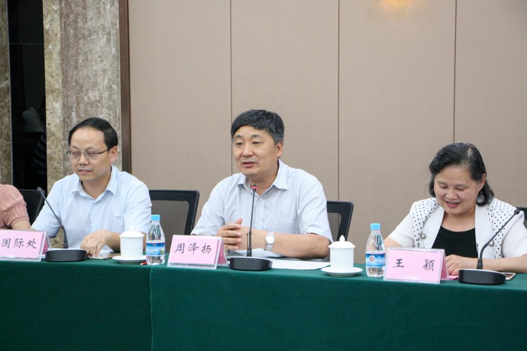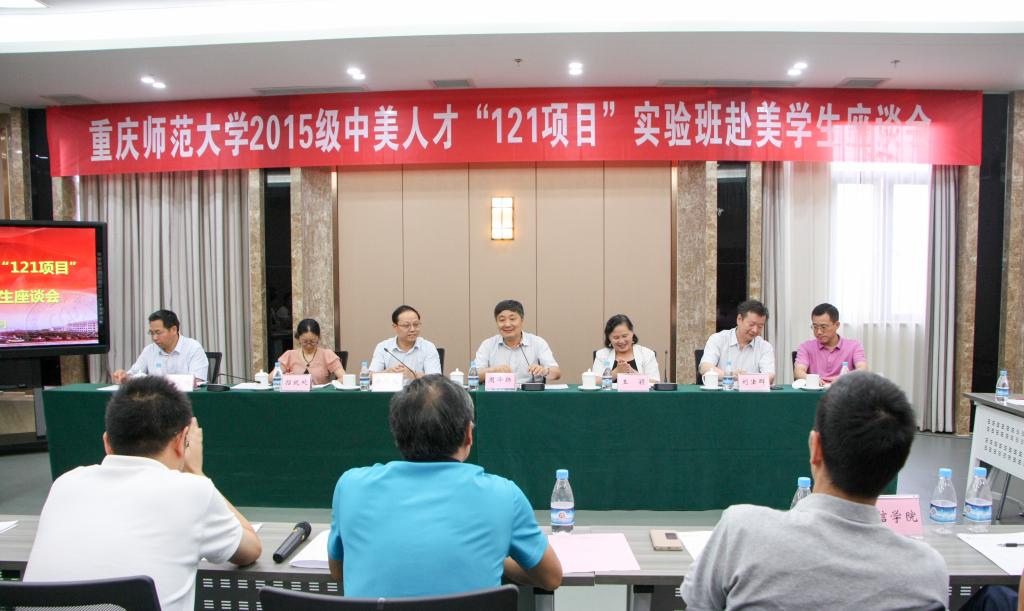 7月1日下午,我校2015级中美人才“121项目”实验班赴美学生座谈会在博雅楼502会议室召开。我校校长周泽扬教授、中国国际教育交流中心主管“121项目”的项目总监王颖以及副总监刘法群出席座谈会。学校国际处、招就处、教务处、学生处等部门负责人及海角社区