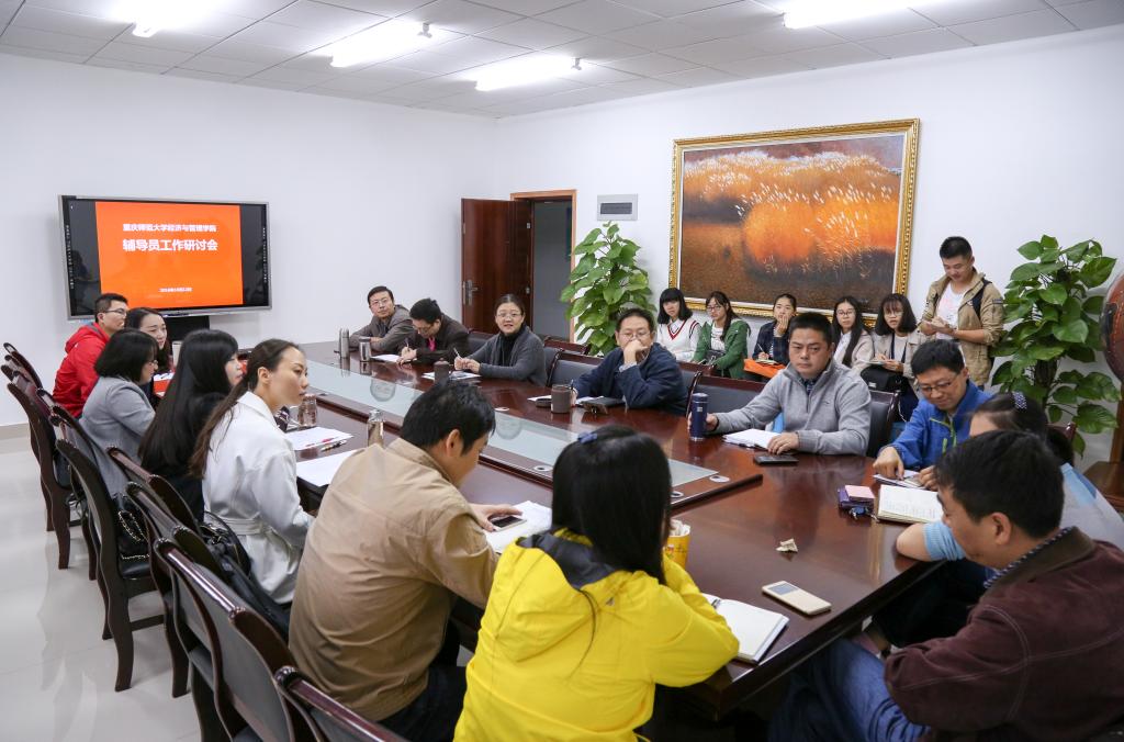 分党委书记税强主持会议。5位辅导员和4位班主任结合年级或班级实际情况,对本年级的工作目标、工作思路、工作经验及特色工作逐一进行了介绍和交流,随后,与会人员就学风建设、制度建设、队伍建设等方面对学生工作的开展进行研讨,为学生工作与教学工作协同发展提出切实可行的建议和意见。2015级辅导员唐爽认为,学生培养是从大一到大四的连续性培养的过程,辅导员要及时针对低年级学生暴露出来的问题进行分析和处理,为后续的学生工作奠定基础。2015、2016级经济学一本班主任冉亚清老师介绍到,学生工作重在抓习惯、抓学习、抓思想,具体来讲就是要加强学生的时间管理能力,引导学生把重心放在学习上,帮助学生建立起在能力、目标、道路上的自信。研究生班主任岳晓峰老师表示,学生工作要“多问”“多念”“多催”,全方位地关心学生。与会人员还针对学生工作当中存在的问题和不足进行了分析和探讨,如就采取何种举措切实加强学风建设、如何培养和管理学生干部队伍、如何把国际班学生在国外学习的正能量传递给国内学生等问题展开了激烈讨论。参会学生代表也结合海角社区