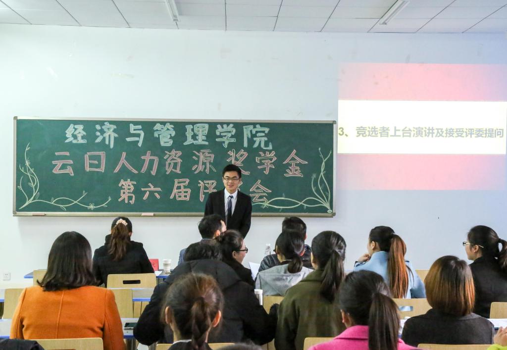 于汇贤楼102教室开展了第六届“云日人力资源奖学金”的评审工作。经管院教授王亚飞、周鹏飞、吴潇航出席了本次评审。会议由经管院团总支学生会组织部副部刘敏主持。
