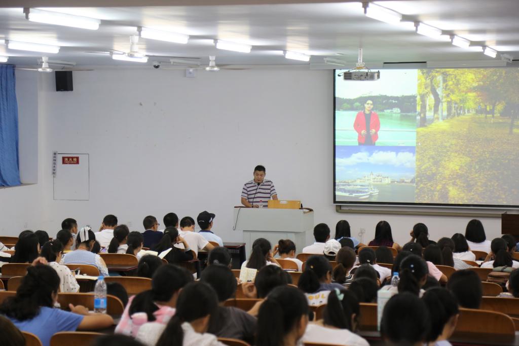 项目合作的鲍尔州立大学与德布勒森大学展开讲解。鲍尔州立大学位于美国印第安纳州中部的曼西市,是美国最著名的公立大学之一,该学校设有7个院系,150多个专业,学校占地面积为1140英亩,在校教职工近千余人,学生两万余人。周教授从该校专业特色、相关费用、就读程序、就读优势等方面进行深入的介绍与讲解,并给同学们展示在校留学生分享回国内的日常生活图片,场面十分亲切。
