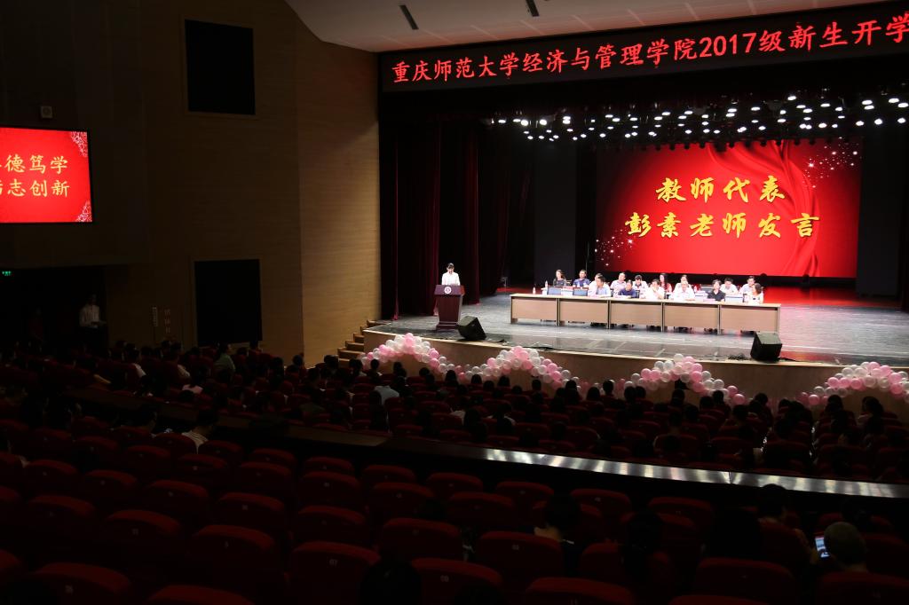 “合理规划时间,莫要本末倒置”,教师代表彭素对新生在大学里的学习生活上这样建议到。“使出洪荒之力,尽快适应大学生活,形成自己新的学习思维与方法”是彭老师对新生的忠告。敢想敢拼,才是青春该有的样子。新生代表韦超前发言表示,挫折不可逆,失败也总是如影随行,但是总有一天,我会靠自己实现所有梦想!高年级学生代表刘安琪对新生建议,加入学生会可以施展才华、提升能力,而兴趣小组、社团更是一个可以提升自己专业能力的地方,愿学弟学妹们抓住机会,全面发展自己。心怀梦想,珍惜现在,才是对青春韶华的不辜负。
