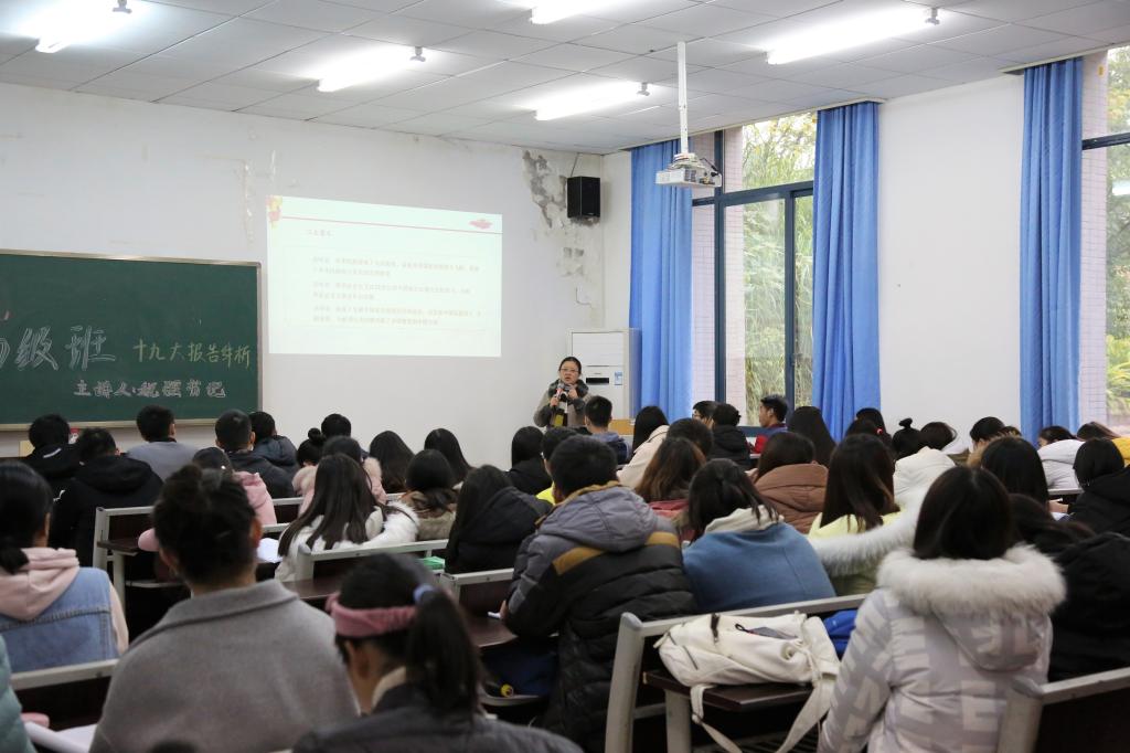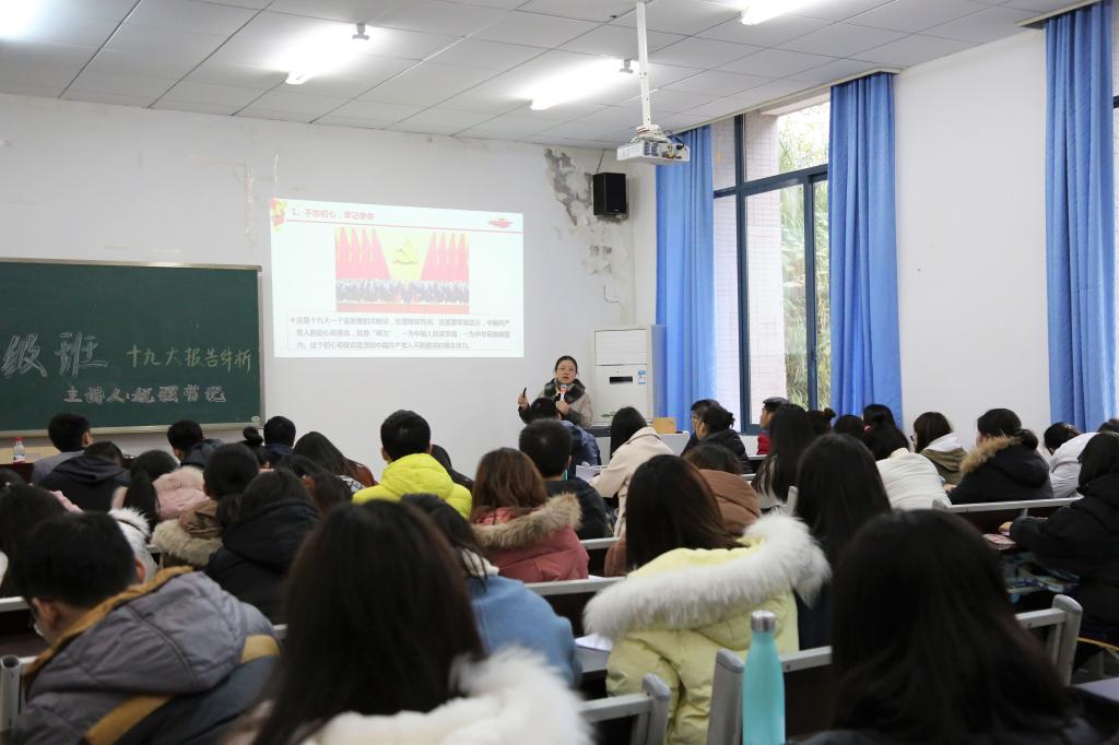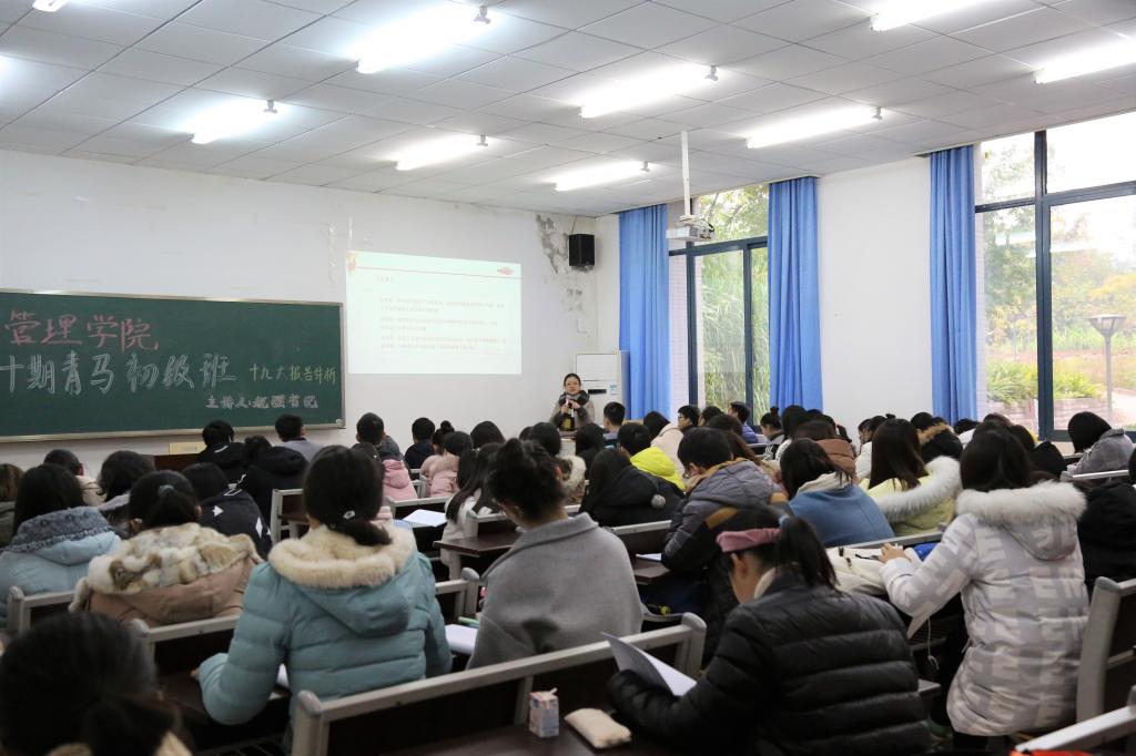 青年马克思主义者培养初级班于学院楼101教室作了题为“不忘初心、牢记使命”的十九大精神宣讲。宣讲会由学院党委书记税强主讲,第十期青马初级班全体学员到场学习。