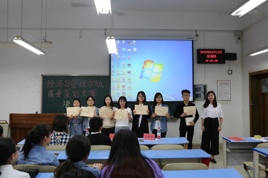活动伊始,主持人上台介绍出席嘉宾及大赛的环节组成。比赛成绩由策划结构、ppt展示、答辩和现场表现四部分组成。在ppt展示环节,各策划小组从营销策划、SWOT分析等方面着手展示。华硕笔记本电脑策划方案的策划团队从华硕笔记本电脑在重师这个市场的优势、劣势、存在的机遇和威胁四方面进行详细分析,并针对重师学生消费者推出了相应的吸人眼球的促销活动。该策划赢得了评委的一致好评。其余各小组的策划方案也十分精彩,关于山水农家乐、照相馆、共享单车等策划内容让人印象深刻。在答辩和现场表现环节,评委依次从消费者选择、产品竞争行情、促销活动等方面对选手进行提问,选手们随机应变,机智回答。比赛结束,杨浪代表评委席总结发言,他对选手的优秀表现进行充分肯定,并加以鼓励,寄予厚望。最后主持人上台宣布比赛结果:3+1队荣获一等奖;苦集灭道队、张三李四队荣获二等奖;梦之队、致一队、梦之翼队荣获三等奖;新兴战队、无忧二人组队、风启队荣获特等奖。颁奖结束后,选手与评委合影留念。