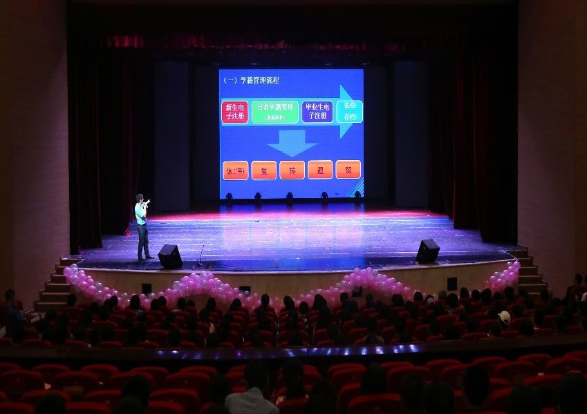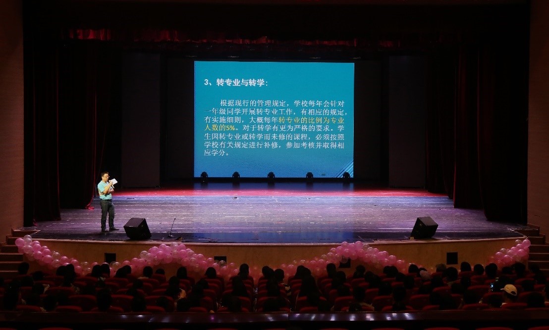 于9月13日下午四点半在校友会堂演出厅开展了针对2018级新生的“入学教育之学习与学籍管理教育讲座”,并由海角社区