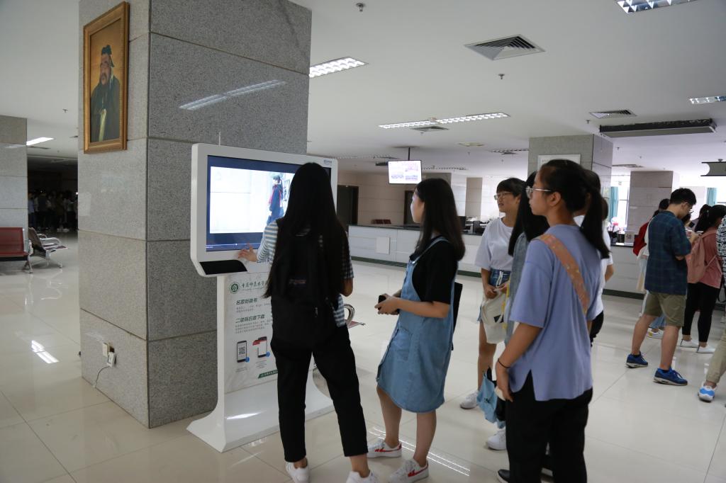 新生首先来到图书馆进行参观。为保障秩序井然,学生共分为七组依次进入,便于充分接受图书馆资源使用的辅导。在讲解员的带领下和讲解下,新生了解到馆内设置及馆藏,文献资源检索及使用方法,入馆要求等信息。通过参观和讲解员的介绍,新生们对我校图书馆有了更深的了解,对今后查找和借阅图书大有帮助。