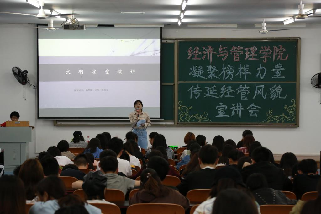 于T2507教室举行“凝聚榜样力量传延经管风貌”第六场学生先进集体和个人宣讲会。本次宣讲分为四组,覆盖全院学生。