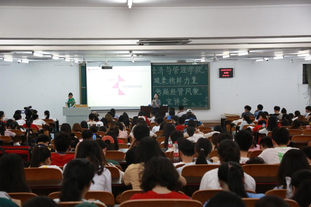 本次宣讲从3月29日开始,持续一月,实现了学生的全覆盖宣讲,重点开展了三项工作。一是积极培育、深入挖掘先进典型。学院结合实际,选树学院三好学生、优秀学生党员和优秀学生干部、文明大学生、先进班集体和文明寝室等方面的先进典型,组建学院“凝聚榜样力量,传承经管风貌”宣讲团。二是广泛组织、持续开展示范引领工作。学院积极组织“凝聚榜样力量,传延经管风貌”宣讲团进支部、进课堂、进社团、进宿舍,通过专题宣讲、分组讨论、面对面互动交流、谈体会谈心得等方式,大力开展先进集体说示范,学生党员说引领,学生干部说担当,三好学生说学习,文明学生说事迹“五说”活动,不断增强吸引力,进一步的在院内形成“向先进学习,向榜样靠拢”,比、学、赶、帮、超的良好氛围。三是以推进学院文化建设为核心,全方位多角度立体引领。宣讲活动的开展以推进学院文化建设为主线,不断深化载体,充分发挥微博、微信等新媒体优势,依托学院官网、“青马微信公众平台”、QQ官方微博,设立“文化之声-表彰先进宣讲会”专目,实现先进典型宣传工作常抓常新。同时,学院把先进典型宣传融入“寝室风采大赛”“职业生涯规划大赛”等第二课堂活动,进一步拓宽宣传载体,实现了宣讲与专业活动相结合,增强了感染力和感召力。