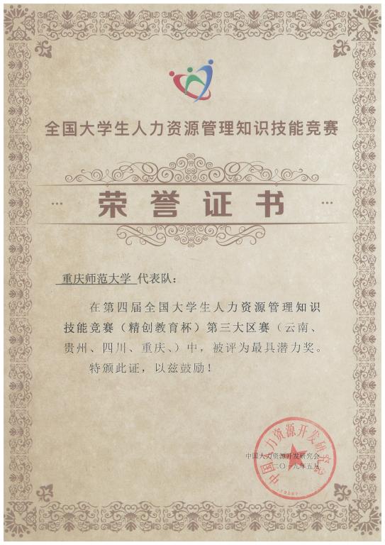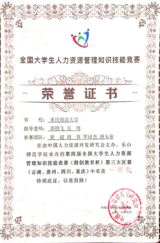 前往乐山师范学院参加第四届全国大学生人力资源管理知识技能竞赛(第三大区赛),斩获第四届全国大学生人力资源管理知识技能竞赛第三大区赛一等奖和最具潜力奖。