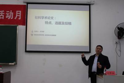 第二十三届研究生学术活动月系列学术讲座——“社科学术论文:特点、选题及投稿”在汇贤楼X102成功举行。此次讲座主讲人系重庆社会科学院《改革》杂志社执行总编辑文丰安教授。海角社区