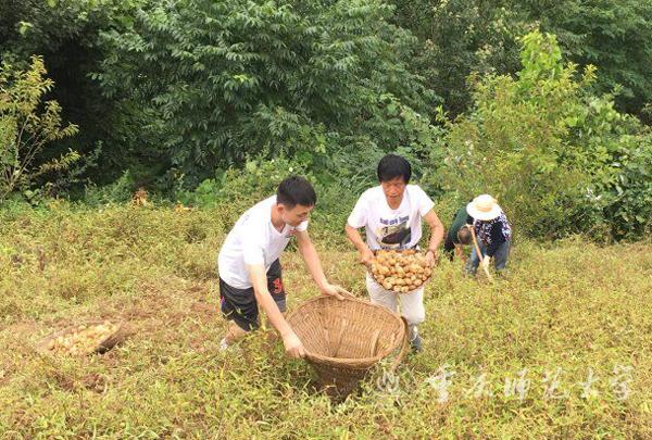 “我们初次见到冯教授的时候,他正在村民的菜地里帮忙挖土豆。”去年7月曾到东河村参加三下乡活动的唐月沁同学对冯佺光教授“接地气”的形象尤为深刻,沾满泥土的运动鞋、被汗水浸湿的衬衫、黝黑的脸庞……冯佺光教授佝着身子熟练地把土豆从菜地里刨出来装进箩筐的样子让她不敢相信这是才到东河村三个多月的大学老教授。