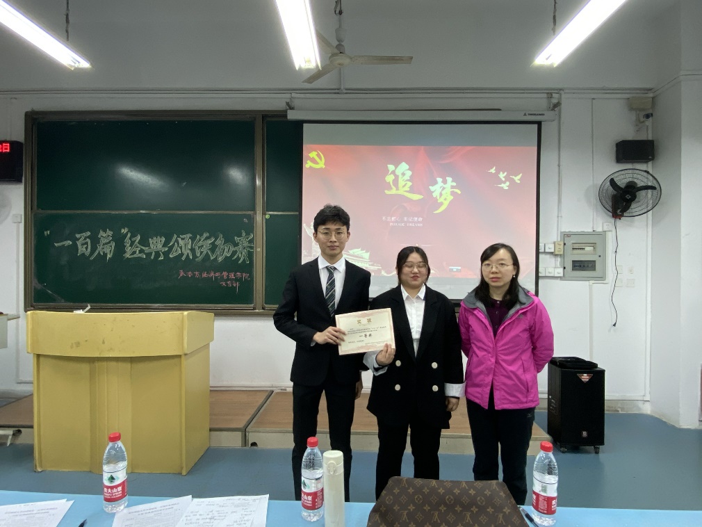 “十个一百”喜迎建党一百周年系列活动之经典诵读比赛初赛于弘德楼15101教室成功举行。演讲与口才兴趣小组指导教师任缙,小组组长江清清,学生会文艺部负责人瞿苏艺担任此次活动评委。