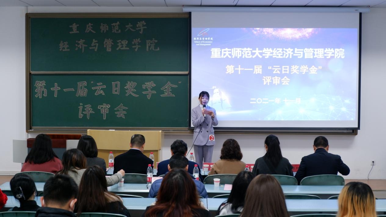 第十一届“云日奖学金”评审会在求是楼421室举行。《重庆科技》杂志主编、研究员、教授甘永祥,重庆市再担保有限公司副总经理喻兰鹰,重庆爱普地产(集团)人力行政部总经理陈再丽担任此次评委,重庆云日人力资源有限公司副总裁徐朝伦、人力资源部负责人欧吉燕,学院副院长(主持工作)郑景丽,党委副书记任源钢,副院长喻科、陈道平及学院人力资源管理系主任周鹏飞,18级辅导员胡雪梅出席了本次评审会。