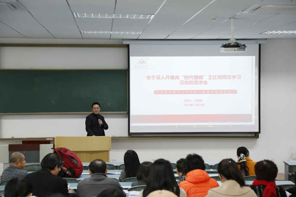 在学习会上,任源钢副书记介绍了王红旭同志敬业奉献、舍己救人的先进事迹,号召同志们学习王红旭同志精神:一是要学习王红旭同志不忘初心、信念坚定的高尚境界,把为党育人、为国育才作为毕生坚定信念和崇高价值追求;二是要学习王红旭同志以德立身、爱生如子的优秀品格,用真情、真心、真诚关爱每一名学生;三是要学习王红旭同志潜心施教、默默奉献的良好作风,认真加强师德师风建设;四是要学习王红旭同志胸怀大爱、见义勇为的崇高精神,认真践行社会主义核心价值观。