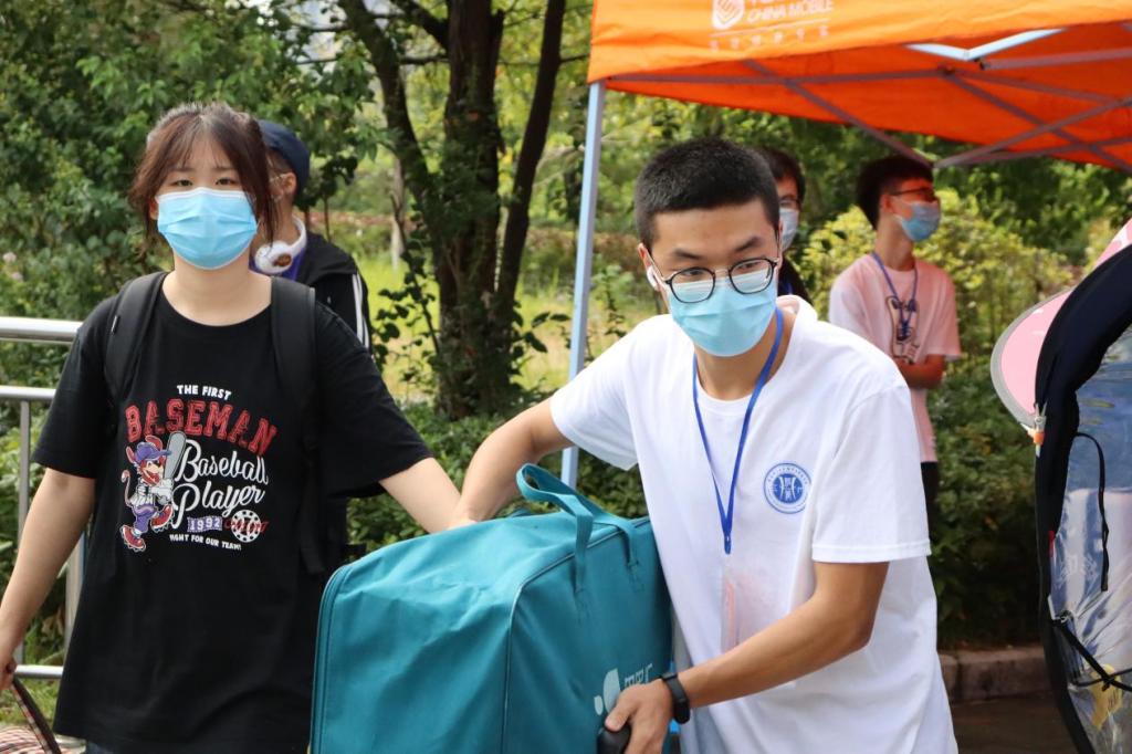 线上线下的志愿者依旧热情不减。志愿者们冒着大雨帮新生们搬运行李、指引道路、解疑释惑,新生们在学长学姐的亲切带领下有条不紊地完成整个入学手续,志愿者团队保证了每一个到校新生都将报到步骤圆满落实到位。