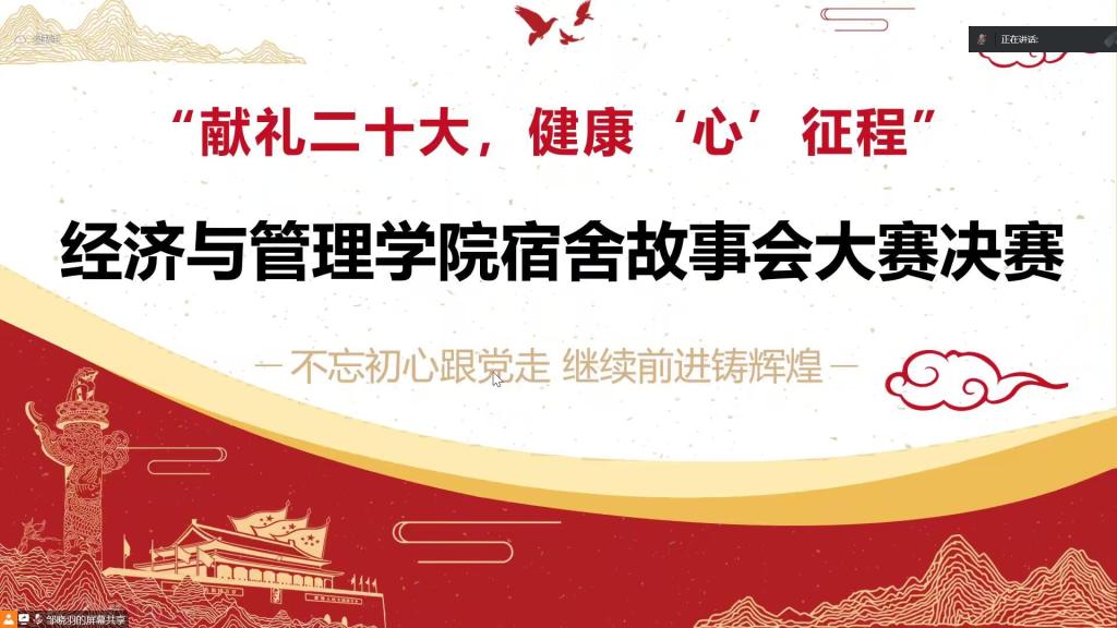 为庆祝党的二十大胜利召开,引导广大青年树立积极健康的心理观念,建立和谐的人际关系。海角社区 于2022年11月10日下午,线上举行了“献礼二十大,健康‘心’征程”宿舍故事会大赛决赛。海角社区 辅导员老师丁延昭,学院团委学生会成员贺琳然、袁玲担任此次比赛评委。