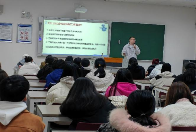 工商管理系夏德建博士在求是楼131围绕专业发展前景、专业学习方法、国考与公招等问题,从专业优势的视角,深入分析了工商管理类专业的就业前景,鼓励学生努力进取,筑梦未来,夏博士的宣讲激发了学生浓厚兴趣,会后久久不愿离场。财务管理系尹亚华博士在求是楼133从专业与就业联系、选择与努力关系、格局与境界选择三个维度,用专业的知识与眼光,激情澎湃地为学生进行了学业规划指导,系主任张保帅教授和何清老师对学生重点关注的问题进行了一一解答。