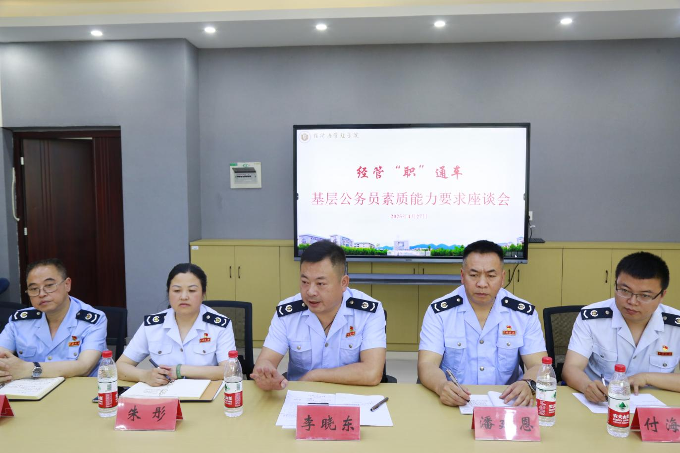 于4月27日下午三点在求是楼520室开展基层公务员素质能力要求座谈会。会议由学院党委副书记李青松主持,特邀国家税务总局资中县税务局局长李晓东主讲,资中县税务局副局长朱彤、副局长周伟、纪检组组长潘建恩和办公室主任付海伟受邀参加,学院30余名学生干部悉数到场。