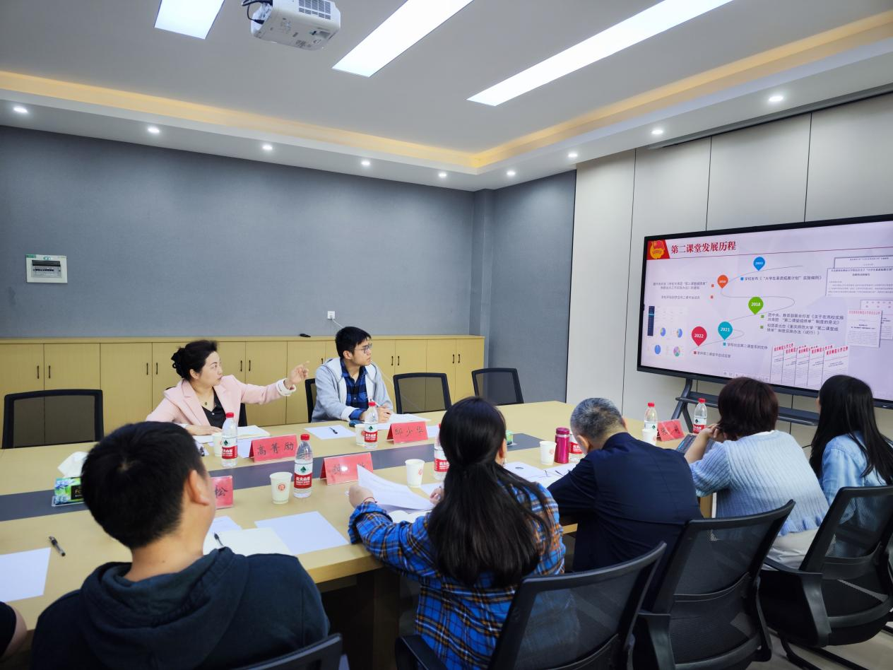 随后,喻科副院长发言,表示学院高度重视和配合校团委第二课堂的相关工作,并就如何将劳育、美育板块与专业特色结合并让专业老师也加入进来展开了深入的讨论。李青松书记谈到,要将第一课堂与第二课堂紧密结合起来,将第二课堂的开展落到实处。最后,钟敏书记总结发言,她肯定了学校共青团工作,表示高书记的精彩讲解使学院老师们进一步了解第二课堂的目标、架构,为学院第二课堂的深入开展提供了方向,学院也会更加注重第二课堂与专业的结合,培养德智体美劳全面发展的学生。