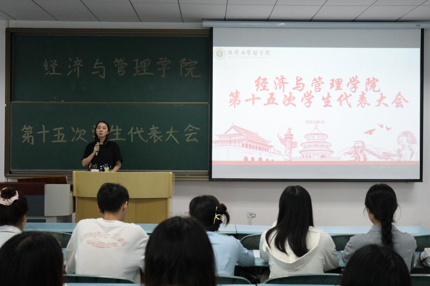 第十五次学生代表大会于求是楼421拉开帷幕,学院团委书记兼学工办主任张莉老师主持会议,87名各年级学生代表参会。