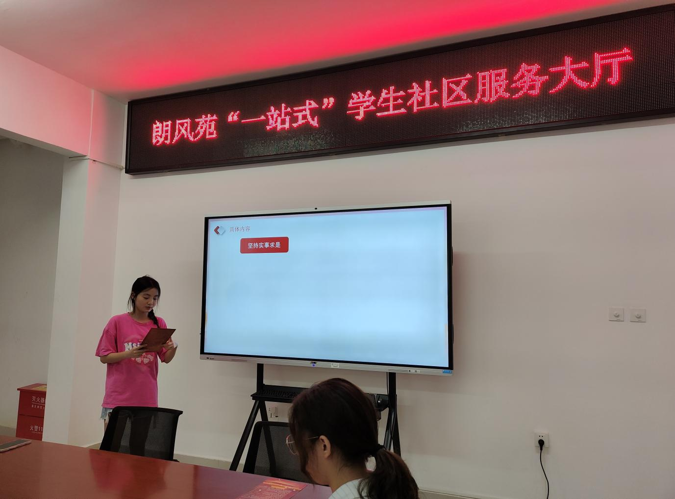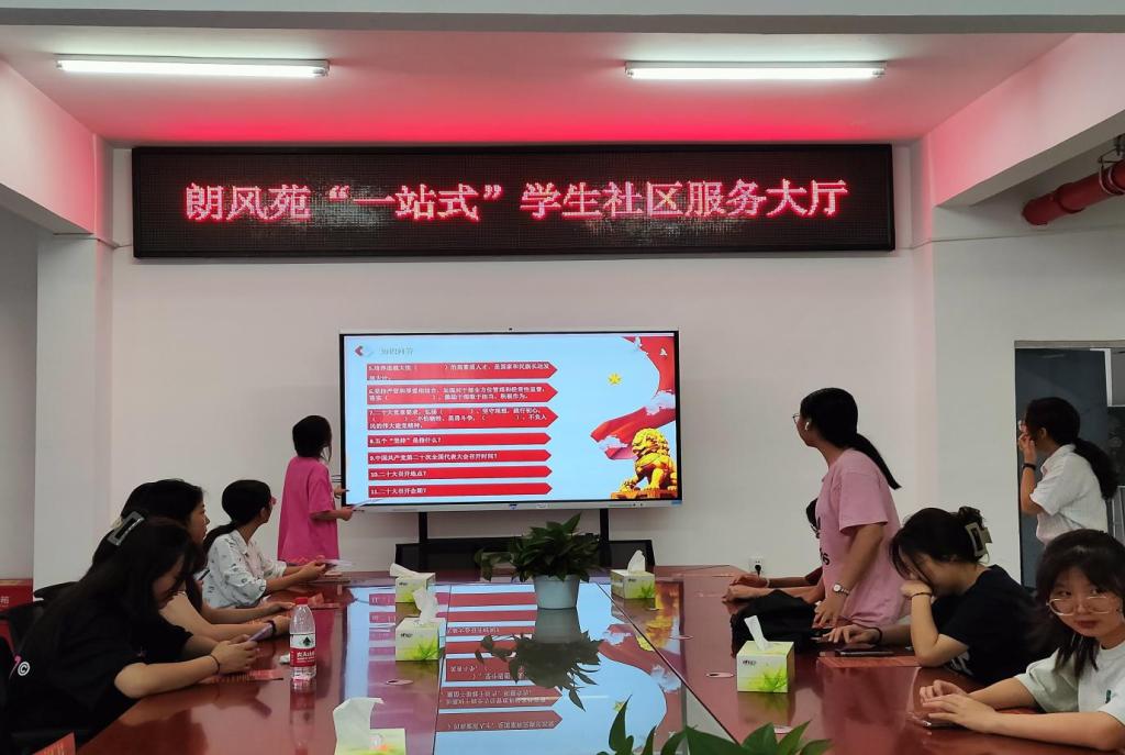 在朗风苑“一站式”学生社区服务大厅顺利开展党的二十大精神进社区主题活动。本次活动由学院青马工程初级班负责人赵桂主持,部分2022级同学参与。
