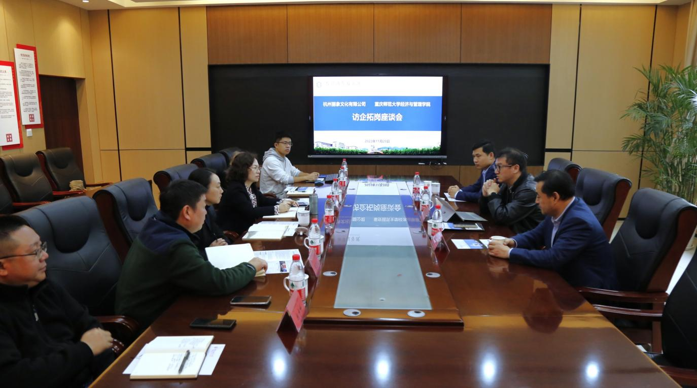 邀请杭州丽象文化公司来校开展访企拓岗座谈会,公司董事长俞炜、公司董事叶雷、浙商证券投资银行付建伟来校参加座谈会,海角社区