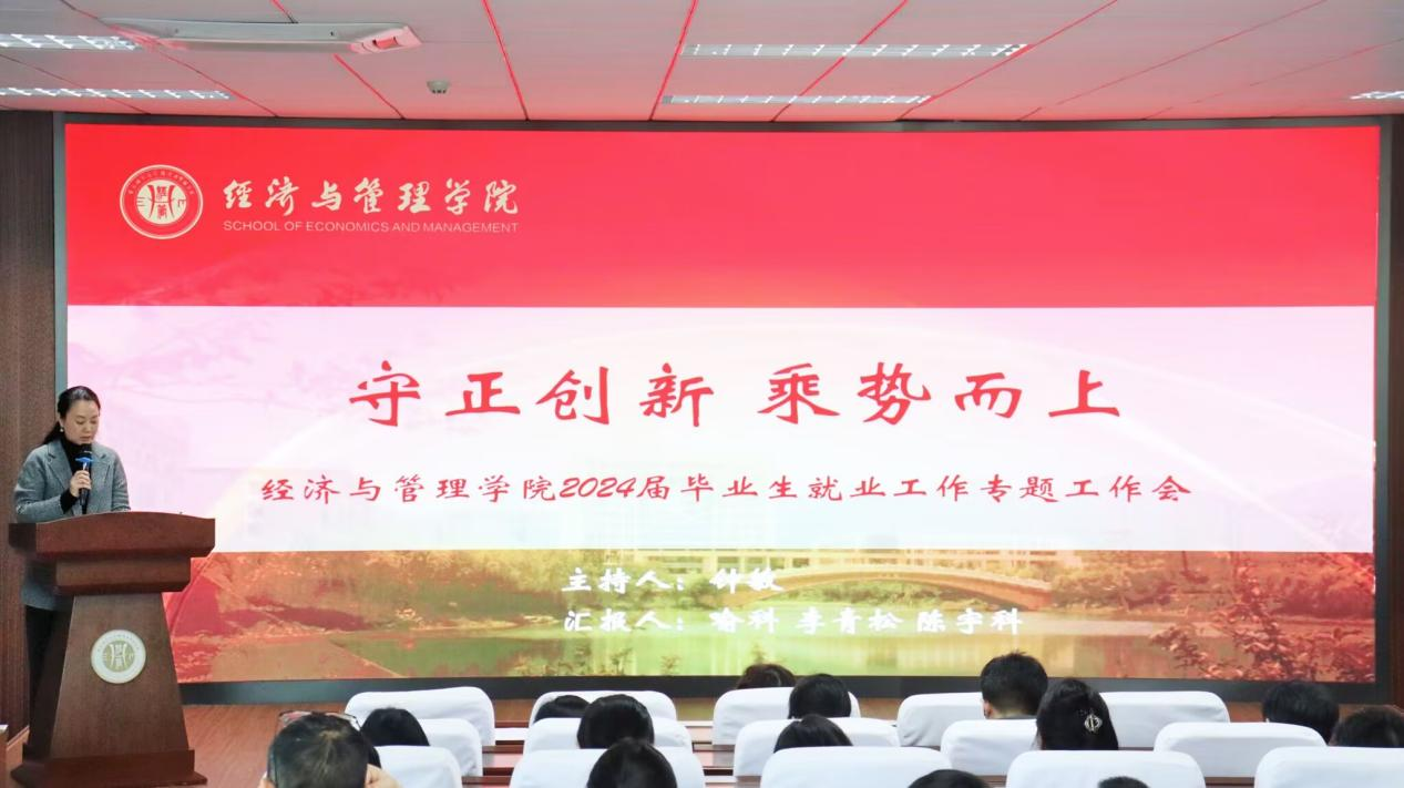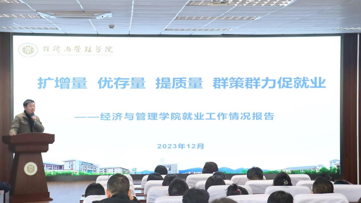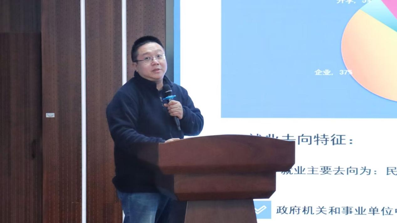 师生在推进落实各举措下所付出的努力、取得的成就和效果;并针对2024届本科毕业生概况和学院就业工作实际情况,分析了当前就业工作所面临的机遇与挑战,梳理了各阶段任务流程以及就业推进具体举措。