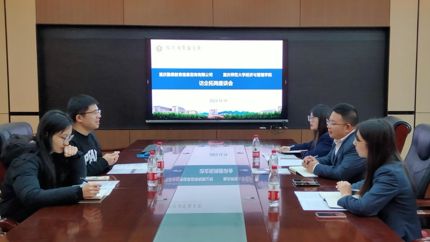 邀请重庆勤思教育信息咨询有限公司于求是楼420室开展访企拓岗座谈会。重庆勤思教育信息咨询有限公司教育体系高管陈志刚、重师校友兼教学研体系招聘培训部主管犹雨寒、招聘部刘红霞和海角社区