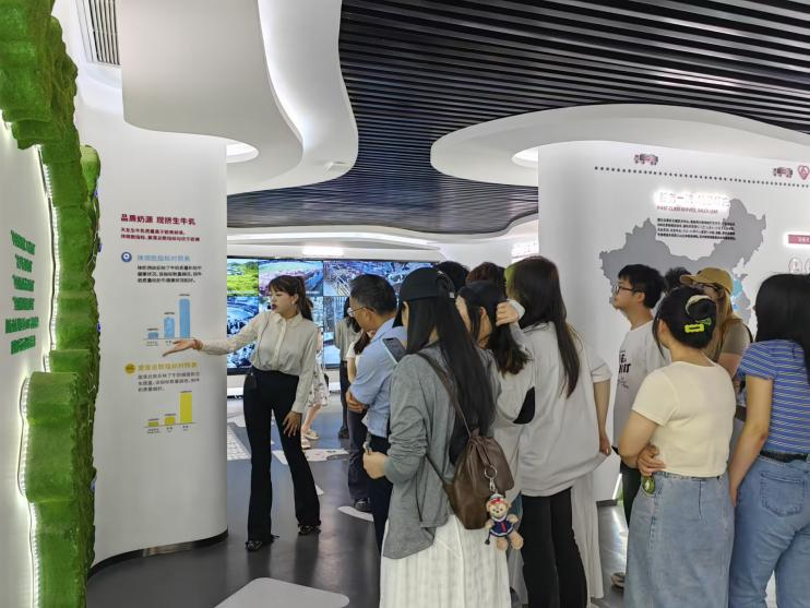 讲解员从天友的经营理念,“世界各国如何看待牛奶”“牛奶为何如此重要”“液态乳制品主要品类及特点”等方面进行详细介绍,并与同学们分享了天友的发展历程、奶牛的养殖和地区分布以及工厂运作流程等信息。