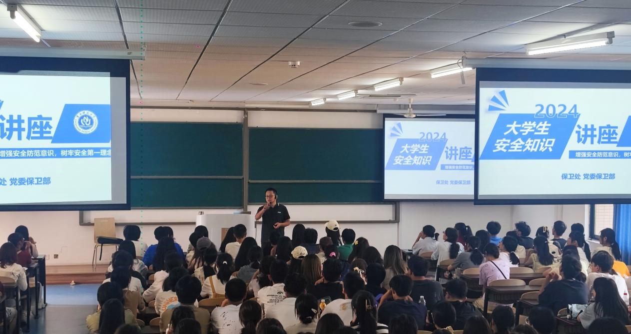保卫处张国建围绕国家安全意识的培养与安全防范教育,深入讲解了校园贷、反邪教、防诈骗及急救等方面的知识,为新生筑起了一道坚实的安全防线。