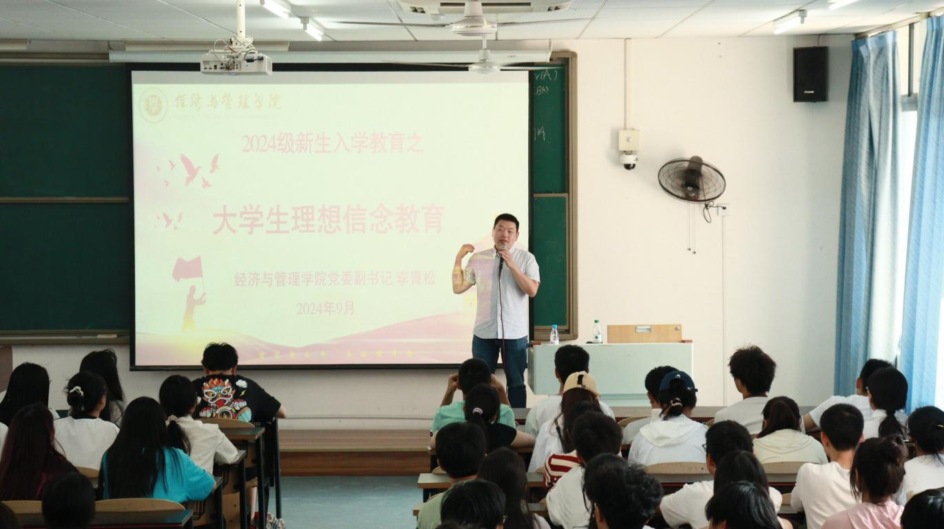 学院党委副书记李青松则为新生带来了入学第一次理想信念教育。他立足时代背景与学院特色,深刻阐述了大学作为人生新起点的独特意义,并鼓励新生树立远大理想,勇于承担社会责任。同时,他还详细介绍了入党流程与入党申请书的书写规范,为有志于加入党组织的同学指明了方向。