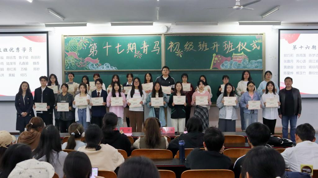 第十七期青马工程初级班开班仪式在砺志楼2113举行,学院党委副书记李青松、团委书记兼学工办主任张莉及第十七期青马初级班全体成员参加本次仪式。