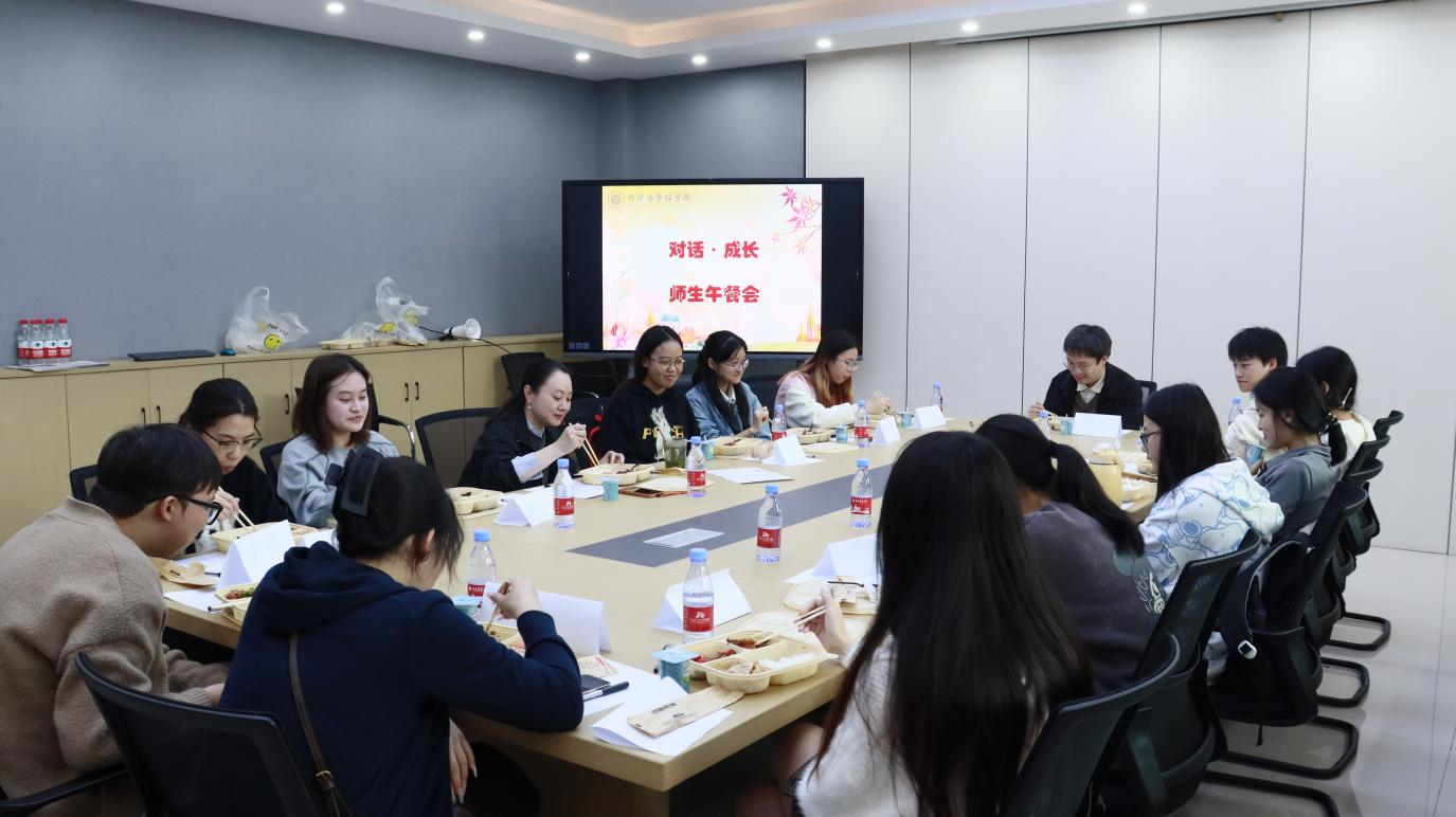 在求是楼520室举行“对话·成长”师生午餐会。学院党委书记钟敏与17名海角社区