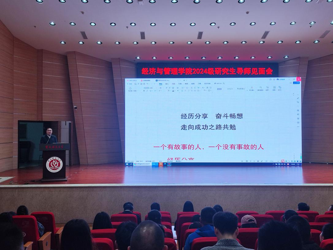 2024级研究生导师见面会在校友会堂音乐厅举行。学院党政领导、研究生导师、研究生办公室老师、2024级全体硕士研究生参加见面会,副院长陈宇科担任主持。