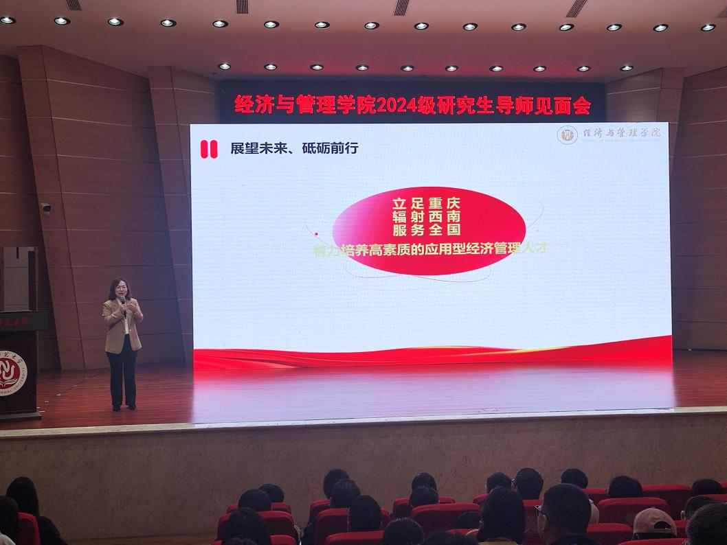 自成立以来,经历了从初创理念的确立到逐步克服挑战、实现规模扩大的不同阶段。学院目前拥有一支师德高尚,具有深厚学术功底、精湛教学能力和科研能力的教师队伍,他们在教学与科研上均取得了丰硕成果。然后,郑院长重点介绍了应用经济学、管理科学与工程、工商管理学等三个一级学科的建设情况、研究生学术创新能力和实践能力的培养过程以及各个专业就业去向情况等。最后,郑院长鼓励2024级研究生努力学习,不负韶华。