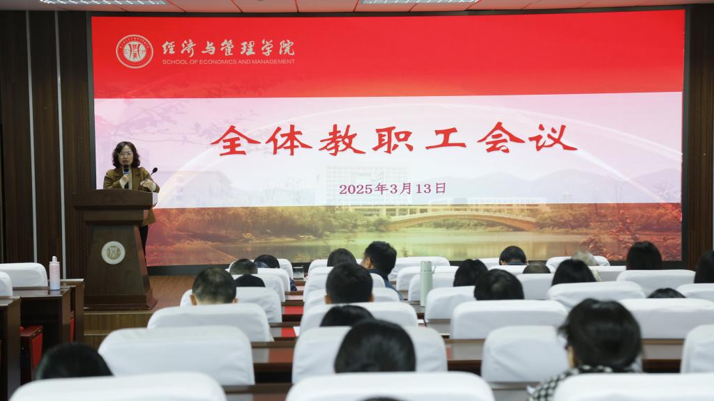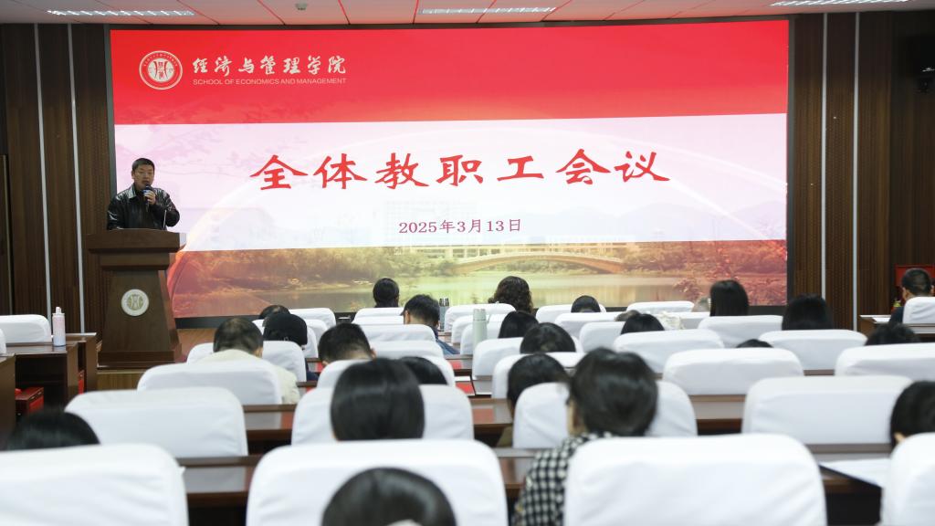 召开全体教职工会议,学院党委书记钟敏、执行院长郑景丽、党委副书记李青松、副院长陈宇科、副院长段俊,及全体教职工出席会议。