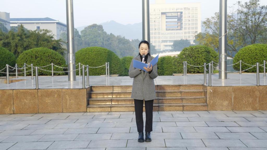 升旗仪式后,学院党委书记钟敏作国旗下讲话,总结了学院成立20周年来取得的成就,肯定了全院师生的辛勤付出。钟书记强调2025年既是贯彻全国教育大会精神,落实教育强国建设规划纲要的关键一年,也是学校贯彻落实党代会精神、全面深化改革的起步之年。为此,她向同学们提出了三点期望:一是要传承红色基因,厚植家国情怀;二是要把握大学之道,锤炼立身之本;三是勇担历史使命,奔赴时代之约。她希望同学们牢记立大志方能明方向,敢担当方能有作为,心怀热忱,步履不停,在十五五新征程上书写经管学院的崭新篇章。