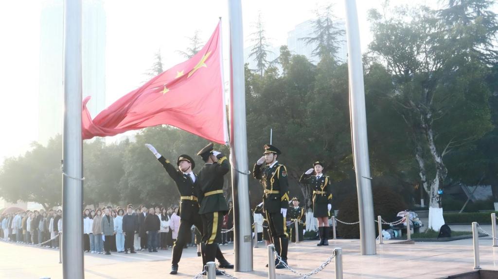 在校前广场举行“国旗下话成长”主题教育活动。学院党政领导、教师代表、全体辅导员以及2024级全体本科学生参加活动。活动由海角社区
