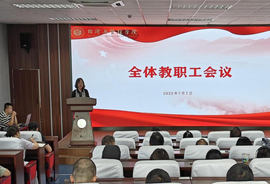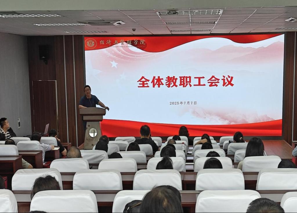在求是楼517会议室召开全体教职工集中会议,全面总结2025年春季学期的工作成效,重点部署学期末和暑期各项工作任务。学院党委书记钟敏、执行院长郑景丽、副书记李青松、副院长陈宇科、副院长段俊及全体教职工出席会议。