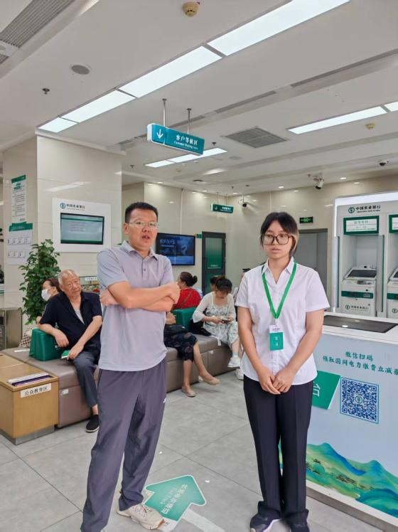 张保帅老师首先向网点负责人详细了解罗燕奉的岗位安排、轮岗情况及业务表现。周玉琴老师则与罗燕奉就“智能柜台分流率”“客户风险识别”等课题展开交流,鼓励她把课堂上的《商业银行经营管理》案例与柜台实战结合,做好每日复盘。罗燕奉汇报说,两周来已独立引导客户开卡,协助完成理财风险评估,深刻体会到“微笑曲线”在零售业务中的价值。