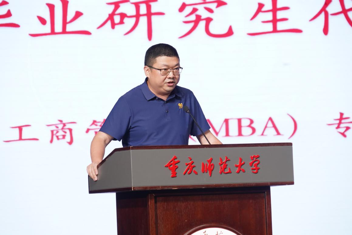 2007级校友张明、2021级校友胡明军先后发言。张明现任职西南大学国家治理学院教授、博士生导师。他结合自身经历,对比当下与过往学习环境差异,指出时代发展带来的信息传播与知识不对称挑战,建议新生要有敢于走难路、走长路、走新路的勇气,以开放创新心态探索学术、发现问题,做新时代重师人。胡明军以过来人与同行者身份,分享三点切身感悟,强调来到经管学院是为了打破思维惯性与认知壁垒、连接多元维度与未来通道、重塑自我定位与未来可能,鼓励新生珍惜在校时光,在师生交流与实践中锤炼能力、明确方向。
