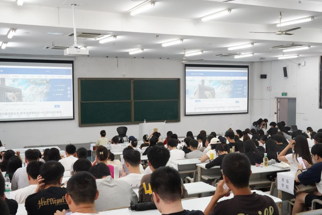 在大会正式开始前,全体新生首先集体观看了图书馆培训视频。培训内容涵盖了图书馆概况、馆藏分布与借阅须知,介绍了超星移动图书馆、读秀学术搜索、三春湖文化活动等资源与服务,同时对“古扬外文”“经论知识服务平台”等文献获取途径进行了说明,并详细演示了校外无障碍访问的方式。