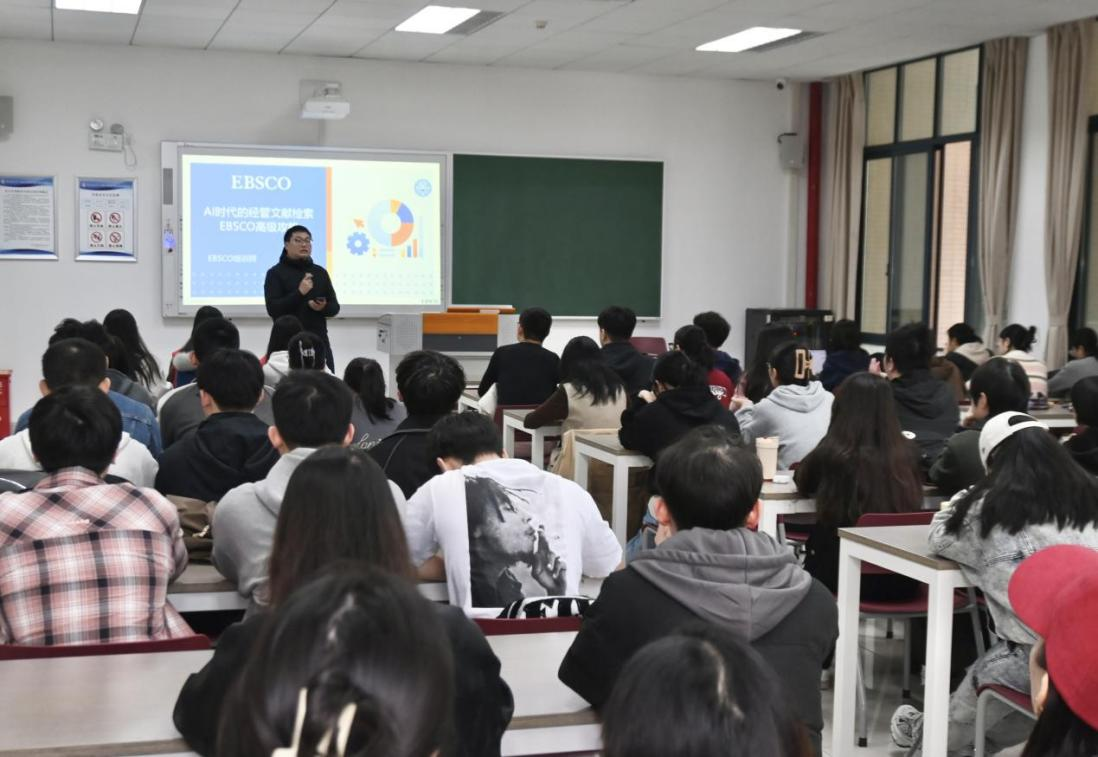 在求是楼220教室成功举办第二十二届“博望经管·研究生讲坛”专题讲座。本次讲座特邀EBSCO资深培训师董丽萍老师担任主讲,主题为“AI时代的经管文献检索:EBSCO高级攻略”,由图书馆张毅老师主持,学院2024级、2025级全体学术性硕士研究生参与此次讲座。