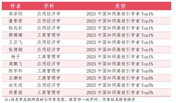 董景荣、陆远权、王亚飞、张德钢、周鹏飞、柴泽阳、穆娜娜、杨子等8位老师入选“2025中国知网高被引学者Top1%”,郑景丽、陈宇科、涂先进、吕潮林等4位老师入选“2025中国知网高被引学者Top5%”。