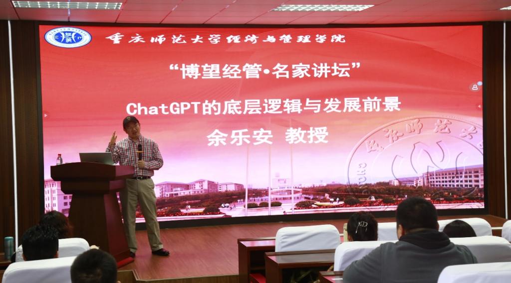 师生开展题为“ChatGPT的底层逻辑和未来发展前景”的学术报告。会议由郑景丽院长主持,喻科副院长、陈宇科副院长、部分教师和研究生近100人参加。